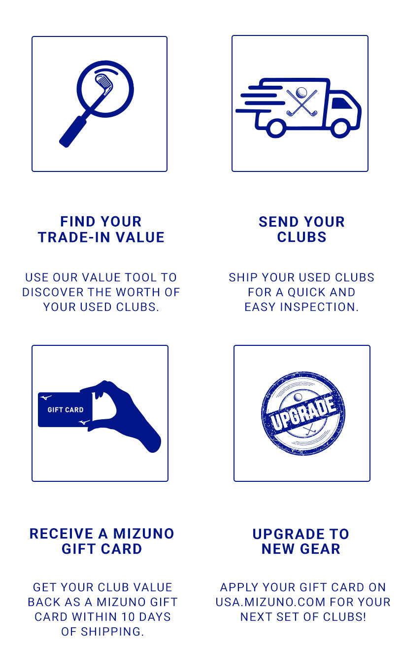 You can trade in any clubs you want toward your Mizuno purchase to ensure you get the best value for your unused equipment.